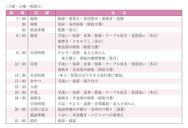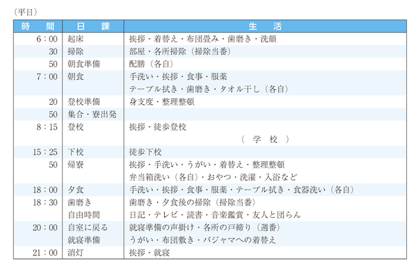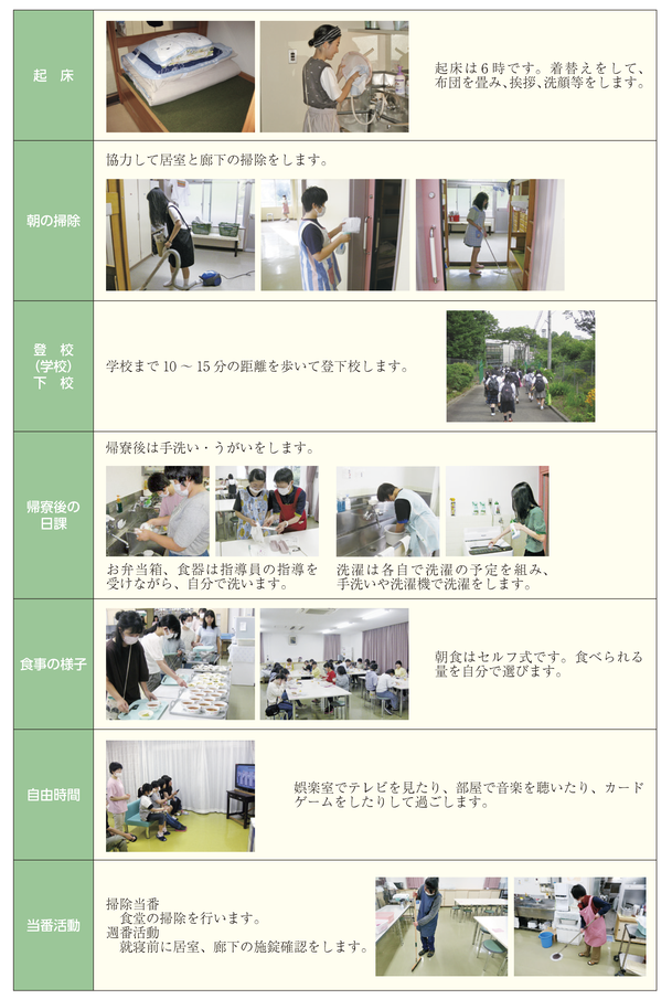 学校経営の方針を踏まえ、将来の社会参加・自立を目指して、寮生一人一人の力や課題を把握し指導に当たる。また、生活環境の整えを心掛け、青年期の女子の生活指導を工夫し、心の安定を図りながら指導に当たる。